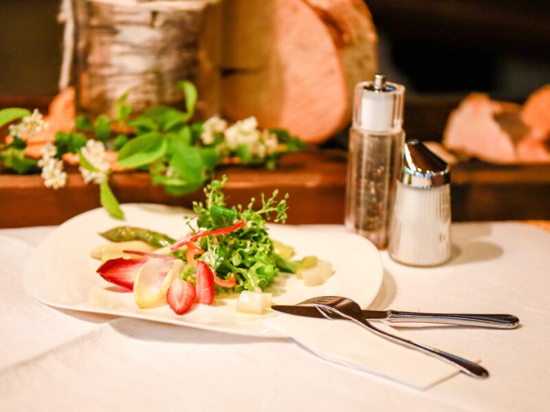 Was bei uns auf den Teller kommt ist noch echte Handarbeit: Fleisch, Fisch, Wild und Hendl stammen direkt aus der Region. Unsere Kräuter holen wir aus dem eigenen Garten – frisch geerntet, mit Liebe verarbeitet. Bei uns gibt's keine Convenience – sondern echte Hausmannskost und saisonale Schmankerl wie Spargel, Schwammerl, Ente und Gansl.